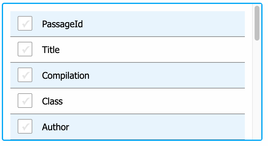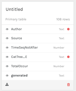 These links will take you to link to the individual passages on the row, allowing you to move between the macro scale table and individual passages. This allows you to recursively prune your results through data analysis and close reading.
