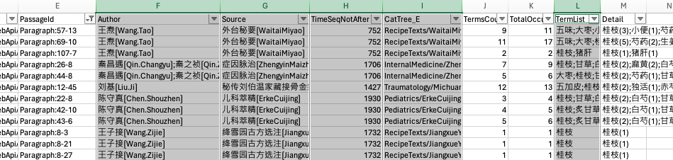 Download this dataset to your desktop. This file is a subset of the DrugsAcrossAsia_China database, containing only those paragraphs with the tagged recipe name 桂枝湯.