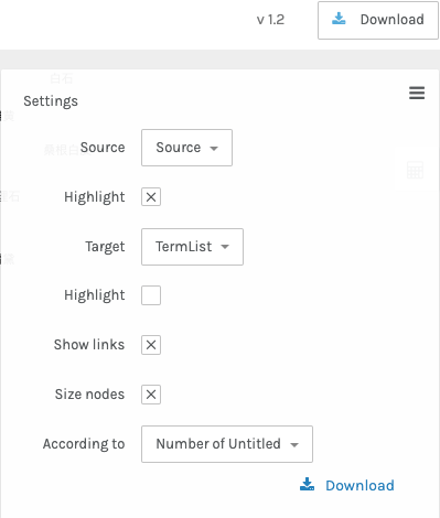 b) and c) allow you to select which metadata to export with the results and download with your term search results.